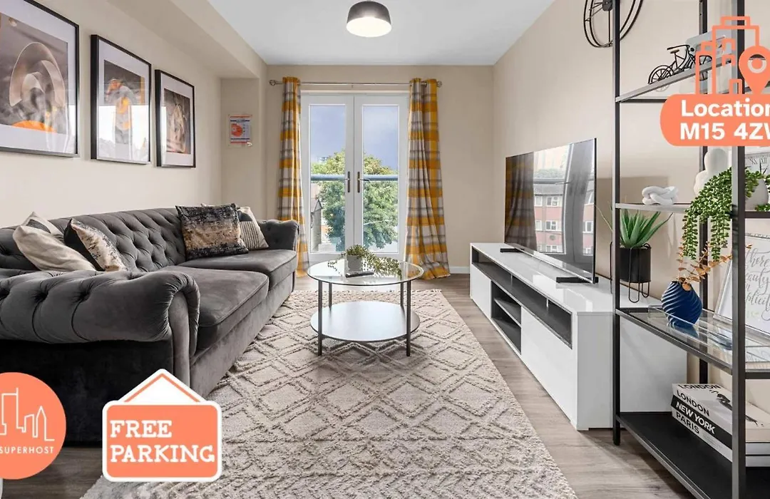 2 Bed Free Parking Mcr Apartment By City Superhost Manchester se situe à 2 km du canal Street et offre un accès pratique à de nombreuses attractions à proximité. Les clients peuvent utiliser le Wi-Fi à des fins professionnelles et de loisirs.